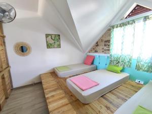This bed in dormitory has a seating area, kitchen and sea view.
