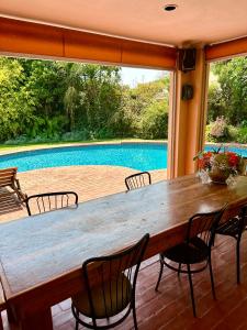 Se puede disfrutar de la piscina cubierta o el jardín en el apartamento.