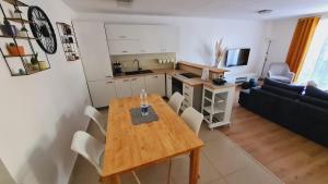 This holiday home features a fireplace. Featuring a private entrance, this air-conditioned holiday home comprises 1 living room, 2 separate bedrooms and 1 bathroom with a walk-in shower and a hairdryer. Guests will find a stovetop, a refrigerator, a dishwasher and kitchenware in the well-equipped kitchen. The holiday home also provides guests with a barbecue. Boasting a terrace with garden views, this holiday home also provides a washing machine and a flat-screen TV with streaming services. V této ubytovací jednotce je k dispozici 3 postele.