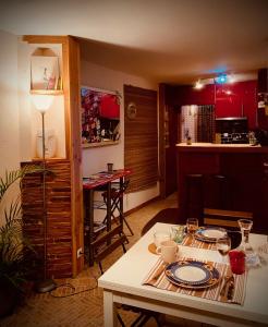 Apartmán A 150 pas du Capitole! má 1 ložnici, obývací prostor, plně vybavený kuchyňský kout s lednicí a troubou a 1 koupelnu. Koupelna je vybavená vanou.