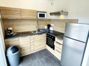 Diese Ferienwohnung besteht aus 1 separaten Schlafzimmer, einer voll ausgestatteten Küche mit einem Kühlschrank und einem Ofen sowie 1 Badezimmer. In dieser Ferienwohnung werden Handtücher und Bettwäsche angeboten.