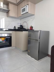 Klimatizovaný apartmán Acogedor Monoambiente en Equipetrol 3 tvoří 1 ložnice, obývací pokoj, plně vybavená kuchyň a 1 koupelnu. Apartmán má také koupelnu.