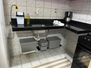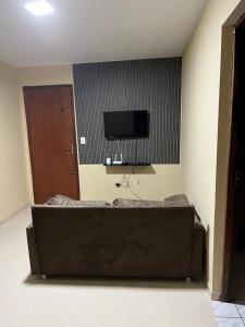 Apartmán Aconchego lar má 1 ložnici, TV s plochou obrazovkou a kuchyňský kout.
