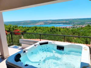 This villa's standout features are the pool with a view, hot tub and sauna. Boasting a private entrance, this air-conditioned villa includes 1 living room, 3 separate bedrooms and 4 bathrooms with a bath and a shower. Guests will find a stovetop, a refrigerator, a dishwasher and kitchenware in the well-equipped kitchen. The villa also features a barbecue. The spacious villa offers a washing machine, a tea and coffee maker, a seating area, a flat-screen TV with satellite channels, as well as sea views. The unit has 5 beds.