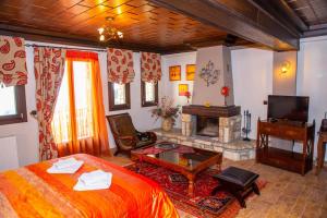 Featuring a seating area with fireplace, this traditionally decorated room enjoys views over Lake Plastira from its windows. It is equipped with a fridge and a TV with satellite channels. The private bathroom has a shower with hydromassage jets.