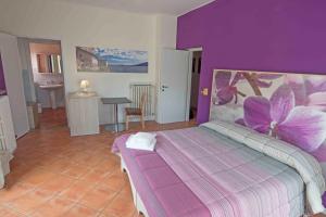 Camera matrimoniale dotata di armadio, pavimento piastrellato, balcone con vista sulla città e bagno privato con doccia. Presenta 1 letto.
