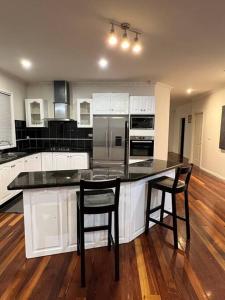 The well-fitted kitchen features a stovetop, a refrigerator, an oven and a microwave. The spacious air-conditioned holiday home offers a flat-screen TV, a washing machine, a private entrance, tumble dryer as well as garden views. The unit offers 5 beds.