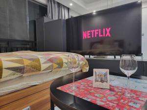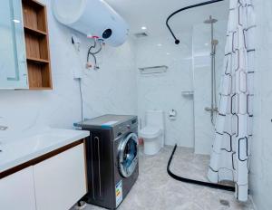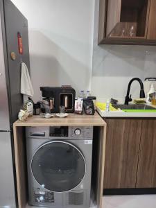 Apartament Affordable Premium Studio Home with Free Infinite Pool, Gym, Office next to Convention Center oferuje 1 sypialnię, kuchnię z lodówką i piekarnikiem oraz 1 łazienkę z prysznicem, suszarką i pralką. Wyposażenie obiektu Affordable Premium Studio Home with Free Infinite Pool, Gym, Office next to Convention Center obejmuje telewizor z płaskim ekranem.