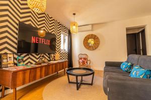 Questa casa vacanze offre una terrazza, un’area salotto, una TV a schermo piatto e una cucina con frigorifero e lavastoviglie. Il bagno privato di AfroBoHome, Expérience Atypique, clim, 2 à 6 personnes, Proche centre Nîmes, Garage clos è completo di doccia e set di cortesia. A disposizione anche un forno, un microonde e un minibar, oltre a una macchina da caffè e un bollitore elettrico.