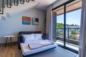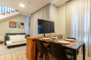 AION suítes 305 - Compacto e luxuoso loft duplex - Rooftop com piscina e academia - À poucos passos da praia se může pochlubit výhledem na město a nabízí ubytování s balkonem a kávovarem. Parque Bombinhas se nachází přibližně 1 km odtud. Součástí AION suítes 305 - Compacto e luxuoso loft duplex - Rooftop com piscina e academia - À poucos passos da praia je terasa a neplacené soukromé parkoviště. Pláž Praia de Bombinhas se nachází 200 metrů odtud.