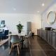 L'appartement Airy spacious tranquil work or chill space comprend une chambre, une télévision à écran plat et une cuisine.