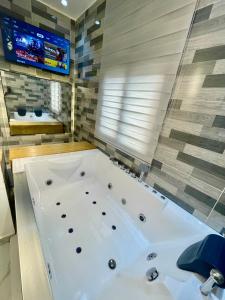 Die Unterkunft Aj3 LUXURY HOME verfügt über eine Reihe von Einrichtungen wie einen Innenpool mit einer Sauna, einem Whirlpool und einem türkischen Dampfbad.