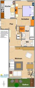 Apartmán ubytování zahrnuje 1 ložnici, plně vybavenou kuchyň s lednicí a myčkou a 1 koupelnu se sprchou. Koupelna v ubytování AKH 044 - Wellness in Haffkrug je zařízena vanou a fénem.