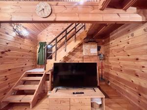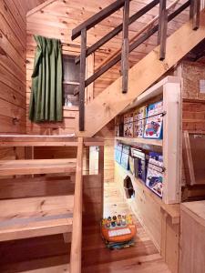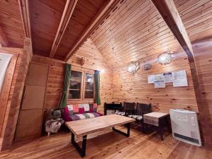 Aki is a three-story lodge which can receive 8 guests. The entry door, living room and dining area, as well as a toilet and a kitchen (with kitchen utensils and table ware), are actually on the 2nd floor. The 3rd floor is a small attic with 4 sets of bedding, and a cooling air-con is established for this area. Underneath the stairs to the 3rd floor, there is a small “kid’s corner”, where we have prepared some toys and books for your kids. The 1stfloor has another toilet and a bathroom, two separate bedrooms, each containing 2 beds. Outside the entry door on the terrace there is a dedicated area for storage of your ski equipment. For non-snow season, Aki provides an outdoor barbecue area and barbecue equipment. The parking lot of Aki can receive 3-4 cars. We wish all members of your family can enjoy a good time here at Aki. Aki是一个可容纳八人的、三层小木屋。二层是入户玄关、客厅和餐厅,有洗手间及厨房,厨具和餐具均已备好。三层是一个放置了四套卧具的小阁楼,并且安装了一台制冷空调用以抵抗炎热夏日。在通往三层的楼梯下面我们精心准备了儿童角,有玩具和绘本。一层有卫生间和浴室、两间相对独立的卧室,每间均可容纳两人。入户玄关外的露台是雪具存放区。非雪季提供户外烧烤台及烧烤设施。Aki的停车场可停放3-4辆车。我们希望所有家庭成员均可在这里度过一个愉快的假期。