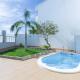 The Double Room features a large double bed, a satellite flat-screen TV, kitchenette with fridge, stovetop and kettle. The bathroom is fitted with a bath or shower, a hairdryer and complimentary toiletries. There is an outdoor dining area for the guests to use.