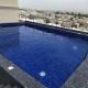 Guests can enjoy the rooftop pool at the apartment.