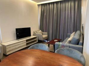 Apartmán Al Saraya Sahl Hasheesh je vybaven 1 ložnicí, TV s plochou obrazovkou, klimatizací a obývacím pokojem. Toto ubytování má kuchyň.