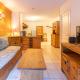 Diese Ferienwohnung mit einem Balkon und Bergblick hat 1 Schlafzimmer, ein Wohnzimmer, einen Flachbild-TV, eine gut ausgestattete Küche mit einem Kühlschrank und einem Ofen sowie 1 Badezimmer mit einer Badewanne. In dieser Ferienwohnung werden Handtücher und Bettwäsche zur Verfügung gestellt.