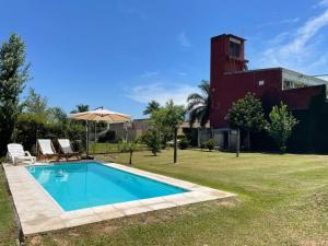 This holiday home features a private pool. The well-equipped kitchen features a stovetop, a refrigerator, kitchenware and an oven. The air-conditioned holiday home provides a flat-screen TV with cable channels, a private entrance, a seating area, a dining area as well as garden views. The unit offers 2 beds.
