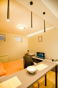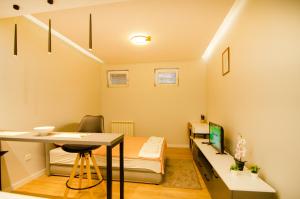 The apartment features 1 bedroom and 1 bathroom with a shower and free toiletries. Guests can make meals in the fully equipped kitchen that has a stovetop, a refrigerator and kitchenware. The apartment provides a tea and coffee maker, a wardrobe, parquet floors, a flat-screen TV with cable channels, as well as garden views. V této ubytovací jednotce je k dispozici 1 postel.