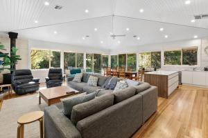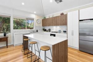 The fireplace is the standout feature of this holiday home. This spacious holiday home comes with 4 bedrooms, a kitchen and 2 bathrooms with a bath and a shower. Guests will find a stovetop, a refrigerator, a dishwasher and an oven in the well-fitted kitchen. The holiday home also includes a barbecue. This holiday home has air conditioning, a washing machine, a TV and outdoor furniture. The unit has 7 beds.