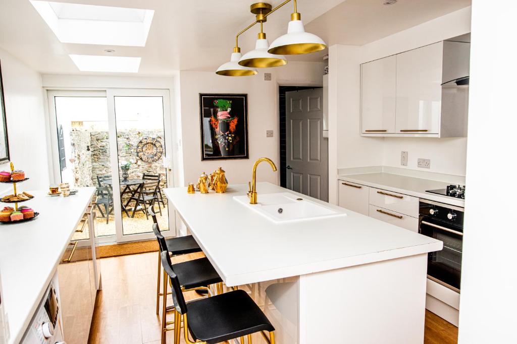 Esta casa en el alojamiento consta de 2 dormitorios, sala de estar, baño con ducha y artículos de aseo, y cocina completa con nevera y cafetera. La casa o chalet Alice in Wonderland cottage by the sea proporciona toallas y ropa de cama.
