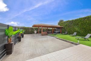 This holiday home offers a hot tub. This spacious holiday home comprises 1 living room, 2 separate bedrooms and 1 bathroom with a bath and a shower. Guests will find a stovetop, a refrigerator, kitchenware and an oven in the kitchen. The holiday home also provides guests with a barbecue. The air-conditioned holiday home provides a flat-screen TV with streaming services, a washing machine, soundproof walls, a dining area as well as garden views. The unit provides 3 beds.