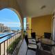 The spacious apartment with a terrace and sea views has 1 bedroom, a living room, a flat-screen TV, an equipped kitchen with a microwave and a fridge, and 1 bathroom with a shower. Guests at ALMA DEL MAR - Miadia Grand Resort, Aheloy can enjoy a meal in the outdoor dining area with garden views. ALMA DEL MAR - Miadia Grand Resort, Aheloy features a dressing room for guests.
