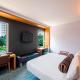 Die modernen Zimmer mit hohen Decken und extra großen Fenstern sind hell und luftig. Sie sind mit einer iPod-Dockingstation und einer Minibar ausgestattet. In den eigenen Badezimmern finden Sie eine Regendusche. Außerdem sind ein eigener Safe und ein Haartrockner vorhanden.