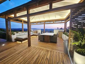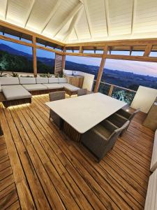 The pool with a view is the standout feature of this holiday home. Boasting a private entrance, this air-conditioned holiday home comes with 1 living room, 5 separate bedrooms and 5 bathrooms with a bath and a shower. Guests will find a stovetop, a refrigerator, kitchenware and an oven in the kitchen. The holiday home also includes a barbecue. Featuring a balcony with sea views, this holiday home also features a tea and coffee maker and a flat-screen TV. The unit has 11 beds.