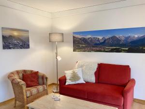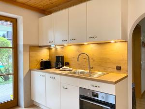 V apartmánu ubytování je 1 ložnice, 1 koupelna, kuchyňský kout, jídelní část, TV s plochou obrazovkou, ložní prádlo a ručníky. Ubytování ubytování nabízí také terasu s výhledem do zahrady. Koupelna v ubytování Alpschätzchen disponuje vanou nebo sprchou.