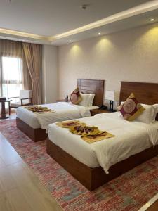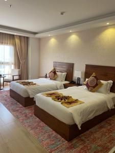 El hotel ofrece habitaciones con aire acondicionado, armario, hervidor, nevera, minibar, caja fuerte, TV de pantalla plana y baño privado con ducha. En Alsahwa Hotel, todas las habitaciones están equipadas con ropa de cama y toallas.