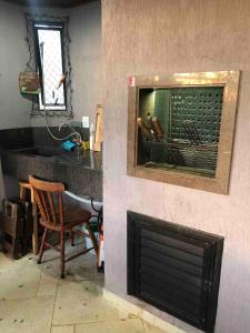Questo appartamento con aria condizionata presenta 1 camera da letto, TV a schermo piatto e cucina con frigorifero e lavastoviglie. Lenzuola e asciugamani sono a vostra disposizione presso Alugo quarto em cobertura.