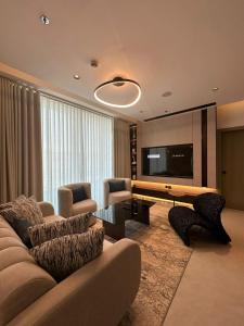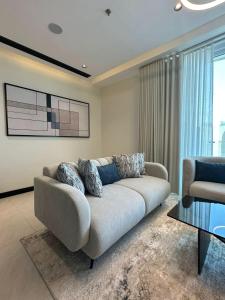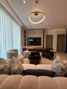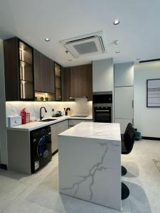 Guests can make meals in the kitchen that is equipped with a stovetop, a refrigerator, a dishwasher and kitchenware. The spacious apartment provides air conditioning, a washing machine, a wardrobe, a high chair for children, as well as a TV.