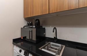 The well-fitted kitchen features a stovetop, a refrigerator, kitchenware and a microwave. The studio offers air conditioning, a washing machine, an electric kettle and a TV.