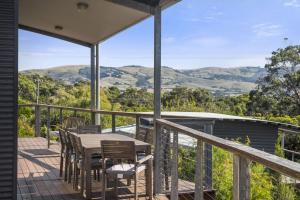 This air-conditioned holiday home has views of Marengo Beach and to Apollo Bay town. It has an enclosed deck area and fenced yard. There is a BBQ, outdoor dining area, fully equipped kitchen, 2 bathrooms and 2 living areas, both with TVs. Linen is supplied.