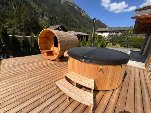Amazing Chalet with Hot Tub Sauna and Panoramic View se nachází v destinaci Chamonix-Mont-Blanc a poskytuje balkon, zahradu a bezplatné Wi-Fi. Lanovka Monte Bianco se nachází 27 km daleko. Tato chata nabízí neplacené soukromé parkoviště a v okolí se můžete věnovat pěší turistice, lyžování, kulečníku a dalším aktivitám.