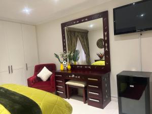 Dieses geräumige Doppelzimmer verfügt über einen Sitzbereich mit einem Flachbild-TV, einen Schreibtisch, eine Terrasse und ein eigenes Bad. Die Wohneinheit ist mit 1 Bett ausgestattet.