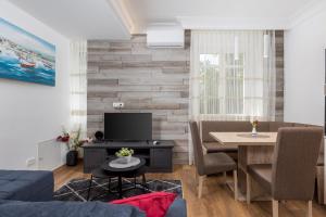This air-conditioned apartment consists of 1 living room, 1 separate bedroom and 1 bathroom with a shower. Guests can make meals in the kitchen that is equipped with a stovetop, a refrigerator, a dishwasher and kitchenware. The apartment provides a washing machine, a coffee machine, a seating area, a wardrobe and a flat-screen TV with cable channels. The unit offers 2 beds.