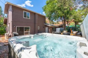 The hot tub is the standout feature of this holiday home. Boasting a private entrance, this spacious holiday home also comes with 3 bedrooms, a seating area and 2 bathrooms with a walk-in shower and a bath. Guests will find a stovetop, a refrigerator, a dishwasher and kitchenware in the well-fitted kitchen. The holiday home also includes a barbecue. The air-conditioned holiday home features a flat-screen TV with streaming services, a washing machine, a tea and coffee maker, a dining area as well as garden views. The unit has 3 beds.