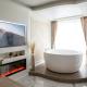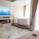 Questo appartamento con 1 camera da letto e aria condizionata presenta 1 bagno con vasca idromassaggio. Presso AMJ Royal Apartments - 120 - Royal Classic è disponibile una TV a schermo piatto.