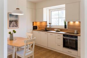 Apartmán 2amMEER zahrnuje 1 ložnici, plně vybavenou kuchyň s lednicí a myčkou a 1 koupelnu se sprchou. Apartmán 2amMEER je vybaven posezením, pračkou a koupelnou s fénem.