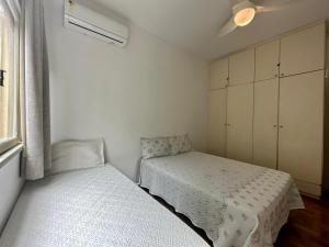Klimatizovaný apartmán v Amplo & Confortável - Copacabana - Posto 6 má 2 ložnice, obývací prostor, 2 koupelny a kuchyň s mikrovlnnou troubou a lednicí. Koupelna je vybavená sprchou.