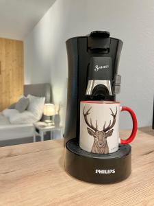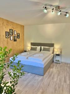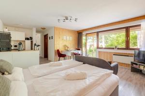 Apartament oferuje sypialnię, łazienkę, jadalnię, w pełni wyposażoną kuchnię oraz pościel i ręczniki. Obiekt An Wanderwegen gelegen mit Terrasse und Boxspringbett oferuje telewizję satelitarną i taras z widokiem na ogród.