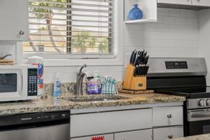 Prázdninový dům má 2 ložnice, 2 koupelny, ložní prádlo, ručníky, TV s kabelovými programy, kuchyň s kompletním vybavením a patio s výhledem na město. V koupelně apartmánu Anchors Up-HeatedPool PrivBeach se nachází vířivka, vana a fén.