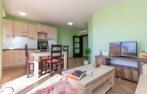 Featuring a private entrance, this air-conditioned apartment comprises 1 living room, 2 separate bedrooms and 1 bathroom with a shower and a bidet. Guests will find a stovetop, a refrigerator, a dishwasher and kitchenware in the well-equipped kitchen. The apartment also provides guests with a barbecue. The spacious apartment provides a washing machine, soundproof walls, a tea and coffee maker as well as a terrace with sea views. The unit offers 3 beds.
