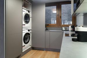 L'appartement Andorra Mountain Retreat l Hiking Trails, Pool, Sauna & Gym l by Bones Vacances comprend une chambre, une télévision à écran plat et une cuisine.
