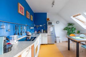 Apartmán ubytování poskytuje 2 ložnice, 1 koupelnu, ložní prádlo, ručníky, satelitní TV s plochou obrazovkou, jídelní kout a plně vybavenou kuchyň. Z terasy ubytování Andreas' Dachwohnung mit Terrasse se otevírá výhled na město. Koupelna v Andreas' Dachwohnung mit Terrasse je vybavena sprchou, fénem, pantoflemi a toaletními potřebami zdarma.