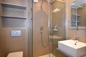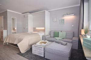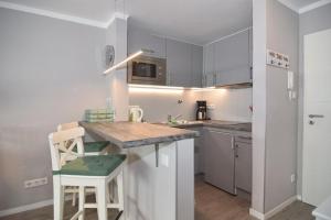 Apartament w Andreas-Dirks-Straße 7, Whg 8 oferuje balkon oraz salon z telewizorem. Wyposażenie aneksu kuchennego obejmuje zmywarkę, mikrofalówkę, toster, a także ekspres do kawy i czajnik.