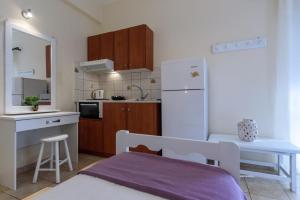 This studio has a dishwasher and seating area.